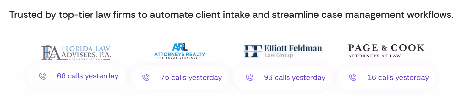Solution: Virtual assistants are a game-changer for small law firms. You can delegate tasks like appointment scheduling, data entry, and client follow-ups to an AI virtual assistant. An AI legal answering service, such as Legalclerk.ai, Smith.ai, or Dialzara, can free up time for more strategic activities. It provides 24/7 phone coverage, legal intake automation, outbound follow-ups, and CRM integration.